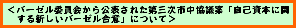 詳細については、金融庁ホームページの「国際機関関連情報」から「バーゼル銀行監督委員会」に入り、平成15年4月29日 「自己資本に関する新しいバーゼル合意」にアクセスしてください。 |