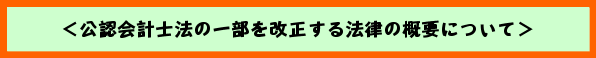 平成15年3月14日に国会に提出された「公認会計士法の一部を改正する法律案」が5月30日に国会で成立しました。 以下、この法改正の概要についてご説明いたします。 |