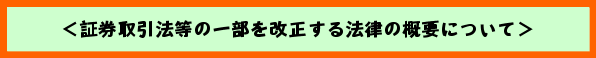 詳細については、金融庁ホームページの「国会提出法案」から「第156回国会における金融庁関連法律案」に入り、「証券取引法等の一部を改正する法律(平成15年3月14日提出、平成15年5月23日成立)」にアクセスしてください。 |