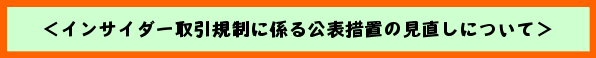 .見直しの内容 上場会社等からその上場等を行っている証券取引所・証券業協会の規則に基づき通知された重要事実が、当該証券取引所・証券業協会においてインターネットを通じて公衆縦覧された場合を、新たにインサイダー取引規制上の公表措置に加えることとしました。(政令及び内閣府令の一部改正の実施) この措置によって、証券取引所・証券業協会に通知された重要事実がリアルタイムで公衆縦覧されることとなり、上場会社等も自社のホームページ等においてすみやかにディスクロージャーを行うことができるようになります。 |