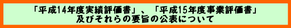 本文等をご覧になりたい方は、金融庁ホームページの「報道発表など」から「平成14年度実績評価書」、「平成15年度事業評価書」及びそれらの要旨の公表について(平成15年8月29日)にアクセスしてください。 |