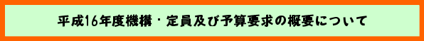 .機構・定員要求の内容 金融庁としては、平成16年度機構・定員要求においては、「より強固な金融システムの構築」、「証券市場の構造改革の推進」及び「実効性、効率性の高い検査・監督体制の整備」の三つを体制整備の重点化項目としています。 |