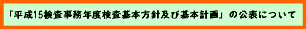 「平成15検査事務年度検査基本方針及び基本計画」をご覧になりたい方は、金融庁ホームページの「報道発表など」から「「平成15検査事務年度検査基本方針及び基本計画」の公表について」(平成15年8月18日)にアクセスしてください。また、「金融検査」については、アクセスFSA本号の「金融便利帳:金融検査」もご覧ください。 |