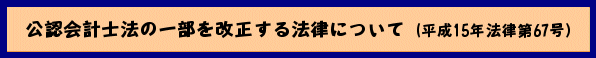 改正法をご覧になりたい方は、金融庁ホームページの「国会提出法案」から「第156回国会における金融庁関連法案」に入り、公認会計士法の一部を改正する法律(平成15年3月14日提出、平成15年5月30日成立)にアクセスしてください。 |
