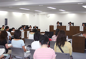 去る8月23日(水)と24日(木)の2日間、金融庁において「子ども見学デー」が開催されました。 「子ども見学デー」とは、主催の文部科学省をはじめとした府省庁等が連携して、業務説明や省内見学などを行うことにより、親子のふれあいを深め、子どもたちが夏休みに広く社会を知る体験活動の機会とするとともに、あわせて府省庁等の施策に対する理解の増進を図ることを目的としており、今年は29省庁が参加しました。 金融庁は平成16年度からこの見学デーに参加しており、この機会に暮らしの中の金融の動きや金融庁の仕事について理解を深めてもらうことを目的として開催しております。 今年の見学デーも昨年と同様、事前に往復はがきで参加者を募りました。その結果、全国各地から昨年以上の応募があり、広報室での厳正な抽選の結果、23日21名の子ども達と19名の引率者、24日は20名の子ども達と18名の引率者にご参加いただきました。 両日とも朝10時に9階特別会議室に集合いただき、まず、オリエンテーション及び業務説明、金融庁ホームページに掲載されている「カネールのKIN★YOUランド」の説明及び紹介を行いました。子ども達の多くは金融庁ホームページ内にある「カネールのKIN★YOUランド」を既にパソコン上で遊んでおり、今回はスクリーンに映し出されたゲーム内容を見ながら説明を受けていました。 「櫻田副大臣とお話しよう!」では、副大臣の子どものころについての質問や、ゼロ金利解除に関する質問などを、副大臣から1つ1つ丁寧に答えていただきました。 また、「大臣室見学」も行い、あいにく与謝野大臣は両日とも不在でありましたが、参加者は国会議事堂をバックに思い思いのポーズで室内を撮影されました。 その後、審判廷に会場を移動し、子ども達参加者が抽選により「審判官」や「指定職員」、「被審人・代理人」となり、「有価証券報告書の虚偽記載事例」をテーマに「模擬審判」を行いました。子ども達は、最初こそ緊張した様子でありましたが、時間の経過とともに審判廷の雰囲気にも慣れ、最後は堂々とした発言をしており、子ども達はもとより引率者からも大変好評を得ました。なお、この模様はテレビでもニュースの一コマとして放映されました。 子ども達及び引率者に記入いただいたアンケート結果からは、「とてもおもしろかった、とても参考になった」との感想のほか、「審判廷見学および模擬審判体験」が大変参考になったという意見が多く寄せられました。 今回いただいた様々な参加者の声は、来年の子ども見学デーに活かしていくことはもちろんのこと、日頃の業務にも活かしていきたいと思います。今後も子ども達に金融の動きや金融庁の仕事について興味を持ってもらい、理解を深めてもらえるように金融庁としても努力してまいります。 |