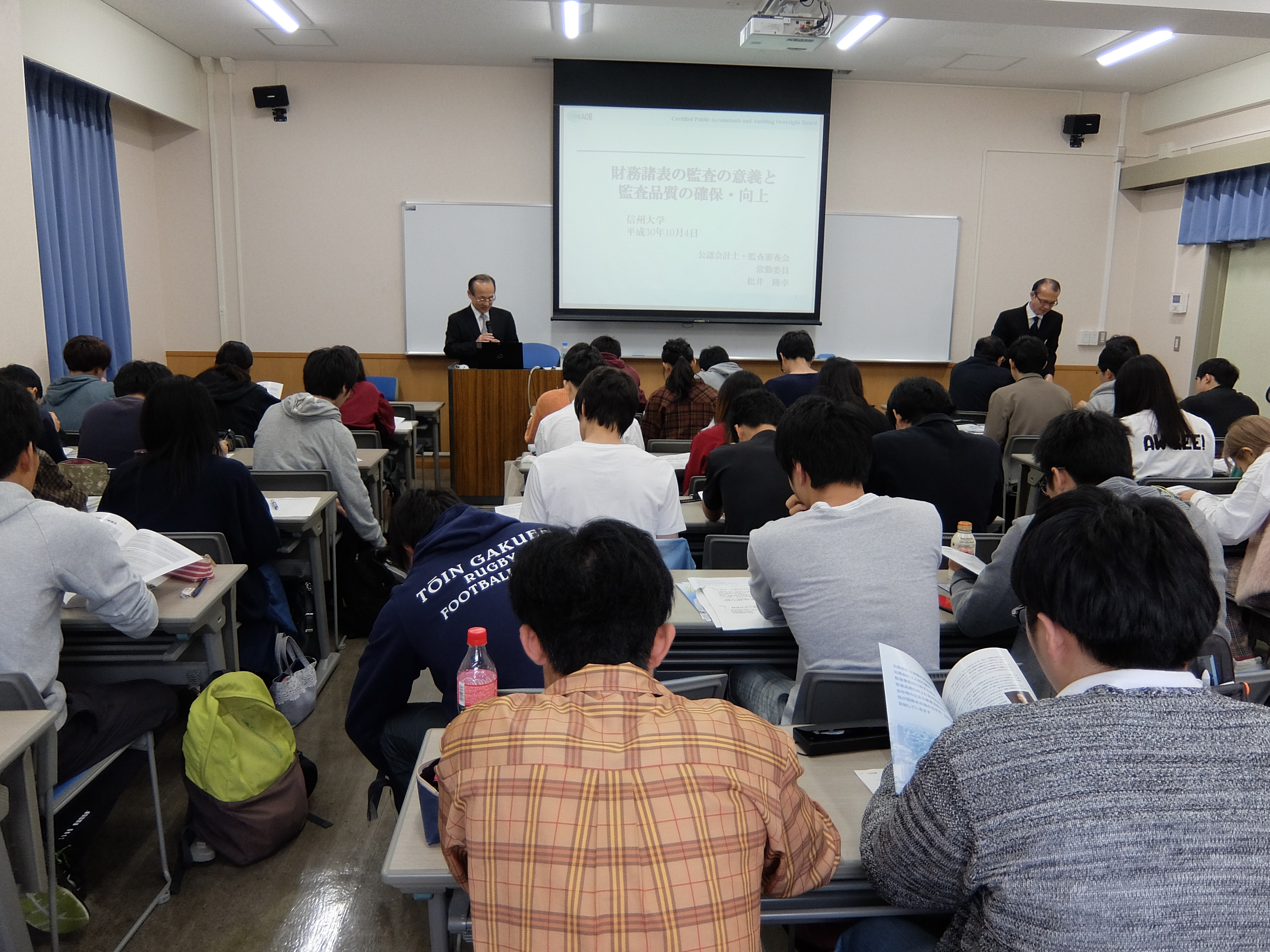 トップページ その他の情報 講演・寄稿等 平成30年の講演会等 講演等 信州大学講演 平成30年10月4日、信州大学経法学部において、松井委員が「財務諸表の監査の意義と監査品質の確保・向上」をテーマとして講演を行い、多数の学生の皆さまに御出席いただきました。 【講演資料】(PDF:482KB) サイトマップ 公認会計士・監査審査会ページ一覧を開きます 審査会について パンフレット 年次報告 審査会の開催状況 品質管理レビューの審査・検査ページ一覧を開きます 基本方針・基本計画等 検査結果等の取りまとめ 勧告 公認会計士試験ページ一覧を開きます 試験実施情報 令和8年試験について 令和7年試験について 過去の試験結果等 試験のバランス調整について 公認会計士試験Q&A 申請書様式等 公認会計士試験合格者等の方へ 公共サービス改革基本方針に基づく民間競争入札 その他の情報ページ一覧を開きます 国際関係 講演・寄稿等 パブリックコメント 公認会計士・監査審査会発足以前の情報 リンク集 採用情報ページ一覧を開きます 採用情報 審査検査課長からのメッセージ(PDF) 検査官からのメッセージ(1)(PDF) 検査官からのメッセージ(2)(PDF) Q&A(PDF) 情報公開等ページ一覧を開きます 情報公開 個人情報保護 ページの先頭に戻る