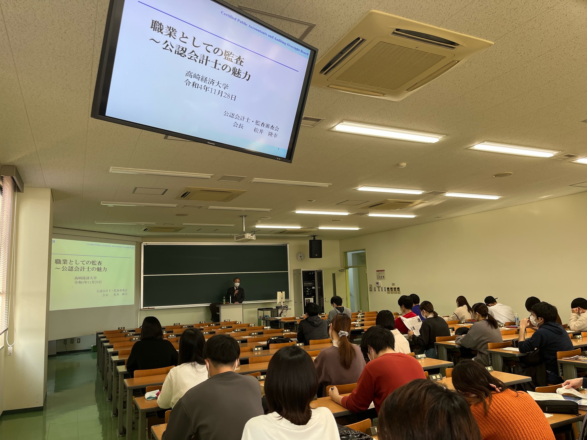 トップページ その他の情報 講演・寄稿等 令和4年の講演会等 講演等 高崎経済大学講演 令和4年11月28日、高崎経済大学において、松井会長が「職業としての監査~公認会計士の魅力」をテーマとして講演を行い、多数の学生の皆さまに御出席いただきました。 【講演資料】(PDF:1,729KB) サイトマップ 公認会計士・監査審査会ページ一覧を開きます 審査会について パンフレット 年次報告 審査会の開催状況 品質管理レビューの審査・検査ページ一覧を開きます 基本方針・基本計画等 検査結果等の取りまとめ 勧告 公認会計士試験ページ一覧を開きます 試験実施情報 令和8年試験について 令和7年試験について 過去の試験結果等 試験のバランス調整について 公認会計士試験Q&A 申請書様式等 公認会計士試験合格者等の方へ 公共サービス改革基本方針に基づく民間競争入札 その他の情報ページ一覧を開きます 国際関係 講演・寄稿等 パブリックコメント 公認会計士・監査審査会発足以前の情報 リンク集 採用情報ページ一覧を開きます 採用情報 審査検査課長からのメッセージ(PDF) 検査官からのメッセージ(1)(PDF) 検査官からのメッセージ(2)(PDF) Q&A(PDF) 情報公開等ページ一覧を開きます 情報公開 個人情報保護 ページの先頭に戻る