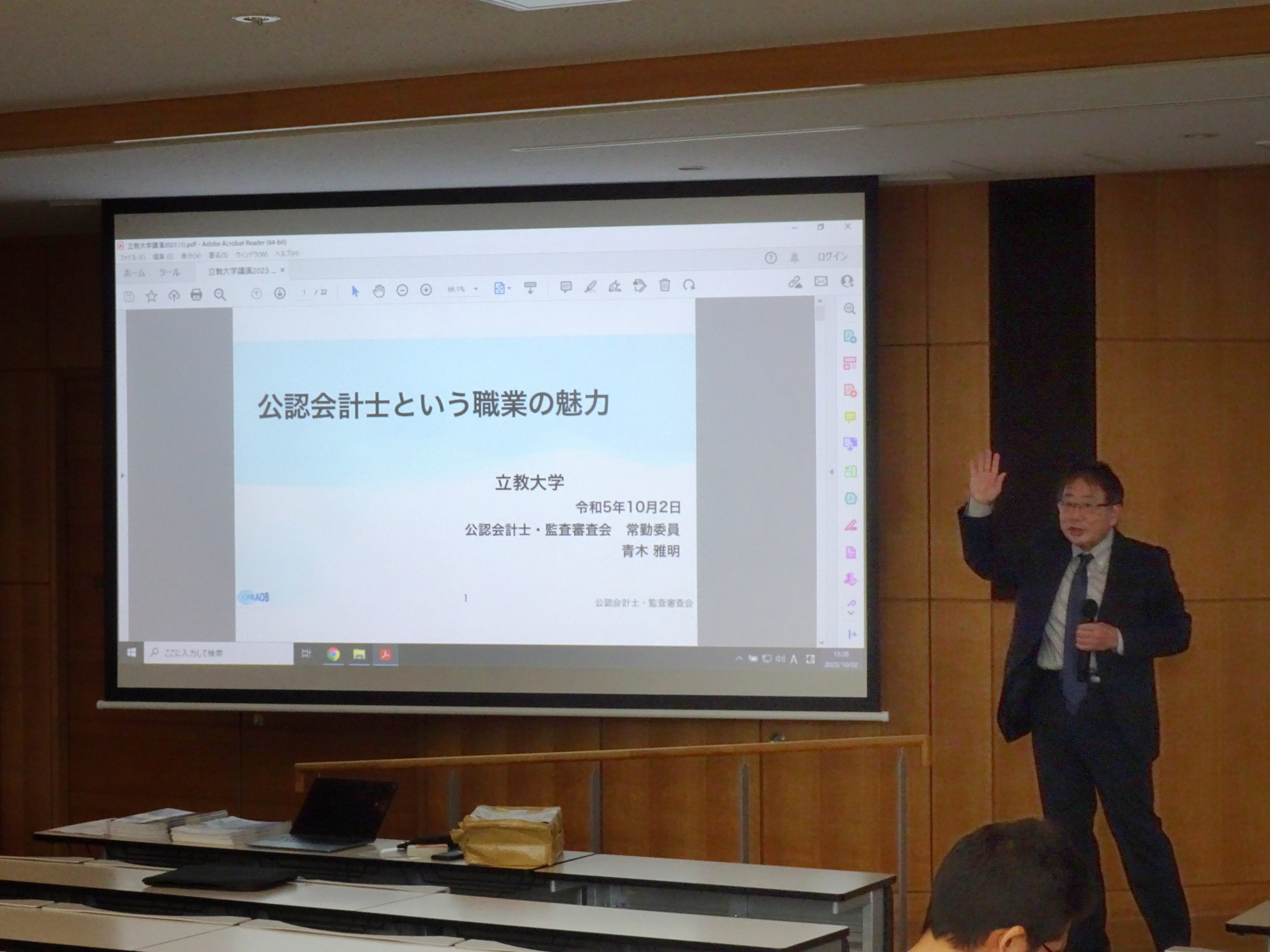 トップページ その他の情報 講演・寄稿等 令和5年の講演会等 講演等 立教大学講演 令和5年10月2日、立教大学において、青木委員が「公認会計士という職業の魅力」をテーマとして講演を行い、多数の学生の皆さまに御出席いただきました。 【講演資料】(PDF:3,775KB) サイトマップ 公認会計士・監査審査会ページ一覧を開きます 審査会について パンフレット 年次報告 審査会の開催状況 品質管理レビューの審査・検査ページ一覧を開きます 基本方針・基本計画等 検査結果等の取りまとめ 勧告 公認会計士試験ページ一覧を開きます 試験実施情報 令和8年試験について 令和7年試験について 過去の試験結果等 試験のバランス調整について 公認会計士試験Q&A 申請書様式等 公認会計士試験合格者等の方へ 公共サービス改革基本方針に基づく民間競争入札 その他の情報ページ一覧を開きます 国際関係 講演・寄稿等 パブリックコメント 公認会計士・監査審査会発足以前の情報 リンク集 採用情報ページ一覧を開きます 採用情報 審査検査課長からのメッセージ(PDF) 検査官からのメッセージ(1)(PDF) 検査官からのメッセージ(2)(PDF) Q&A(PDF) 情報公開等ページ一覧を開きます 情報公開 個人情報保護 ページの先頭に戻る
