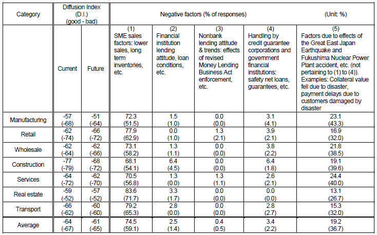 * For details, please go to the FSA's web site and access “Business Sentiment etc. of Small and Medium-sized Enterprises - Questionnaire Survey Results Summary” (September 30) at the Press Releases section. (Available in Japanese only)