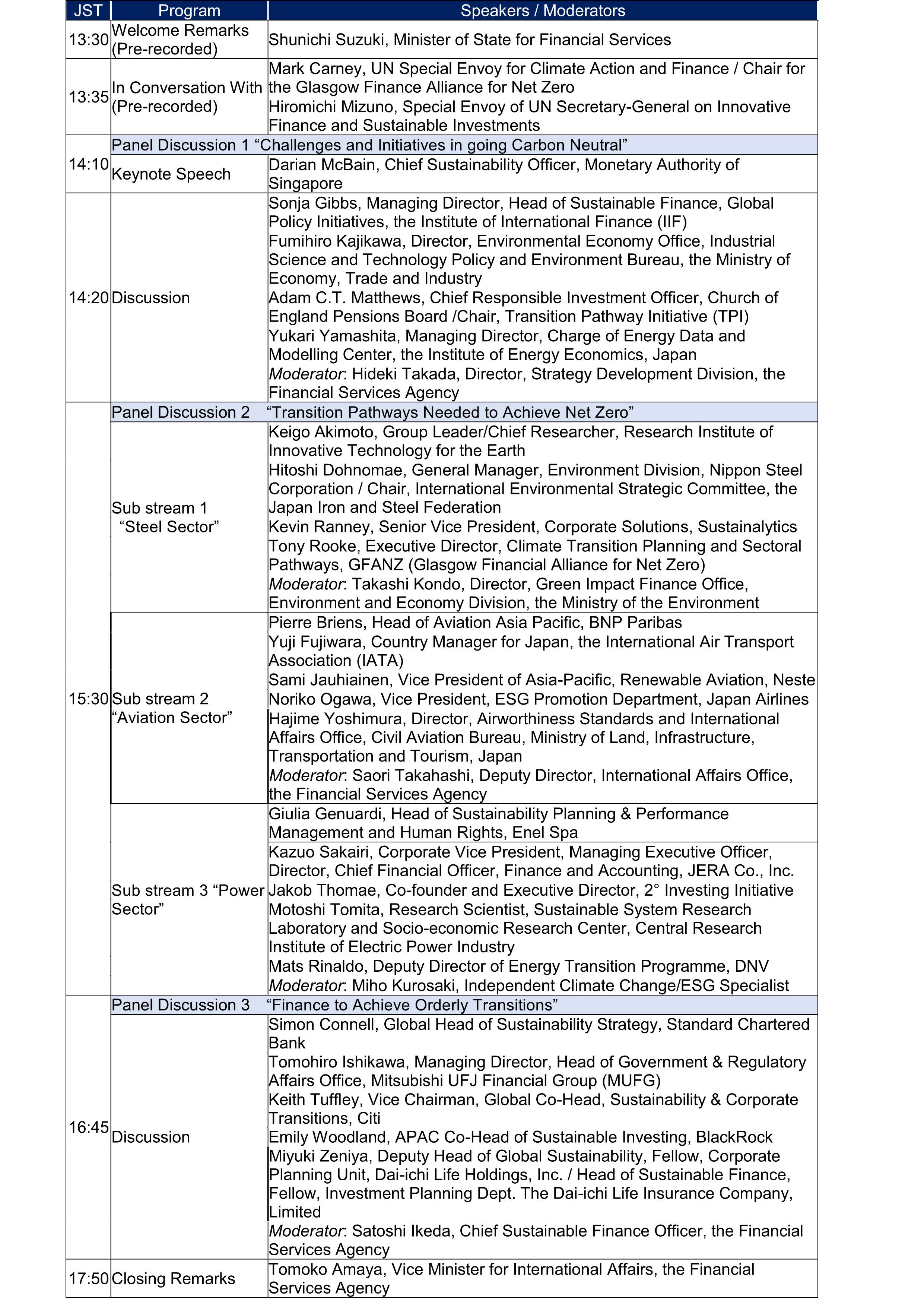 Japanese Video(YouTube) - Power Sector: Panelists from domestic and foreign power companies, think tanks, academia, and third-party evaluation organizations discussed the power industry's efforts and challenges toward net zero, recent energy prices and energy security issues, as well as the role of finance and credible pathways to achieve the 1.5 degree goal. They also exchanged views on what Japan's power sector should do toward 2030.