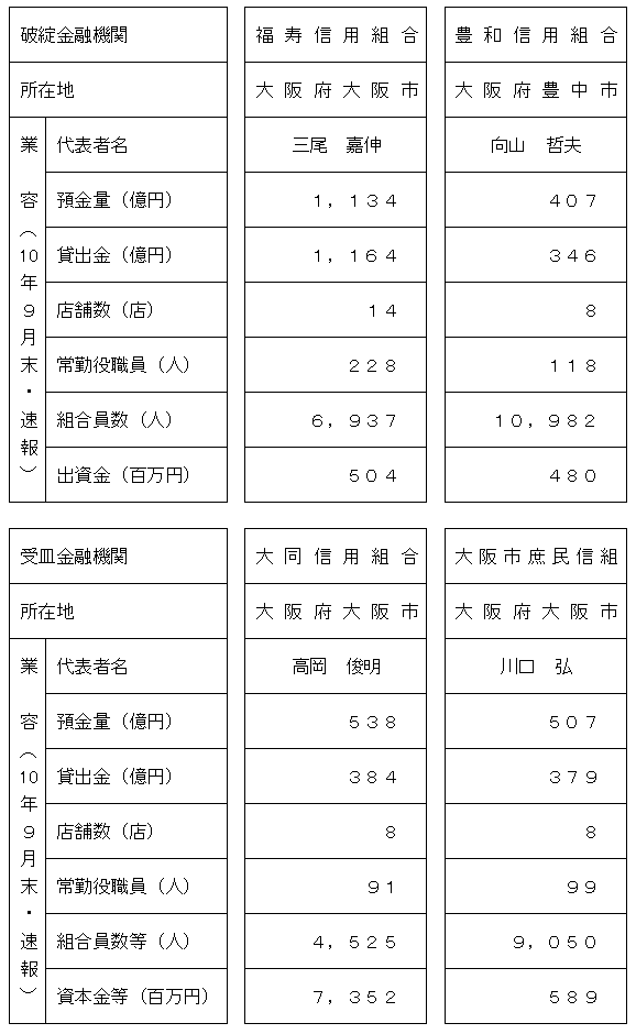 豊和信用組合の大阪庶民信用組合への事業譲渡に係る資金援助の適格性の認定