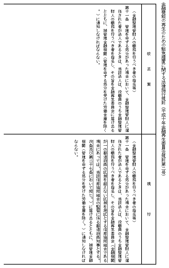 協金法の改正による権限委任(金融再生委員会→金融監督庁長官)規定の項番号の変更(協金法第第7条第2項→第7条第1項)に伴う改正(第11条関係)