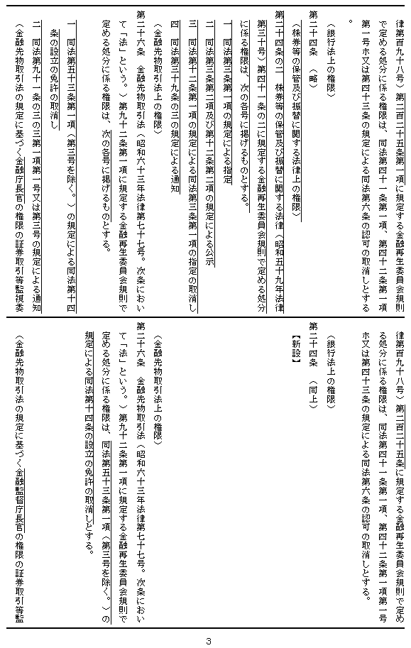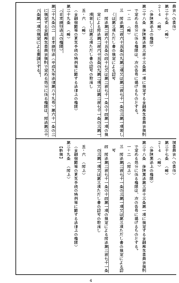 金融庁設置時における大蔵省からの事務の移管等に伴い、新たに金融再生委員会の権限となるもののうち、次のものを金融再生委員会の権限として留保し、その他を金融庁長官に委任する。