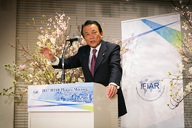 事務局開設にあわせてIFIAR加盟当局や国内外の関係者が参加する開所式が行われ、麻生副総理兼金融担当大臣と薗浦外務副大臣が祝辞を述べました。また、安倍総理の歓迎のメッセージを柴山総理補佐官が代読しました。