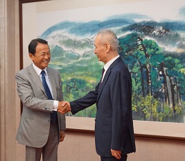 4.本対話に先立ち、麻生副総理は、8月30日午後、中国国務院の韓正筆頭副総理及び劉鶴副総理と会談し、最近の経済・市場の動向や日中金融協力等について意見交換を行いました。