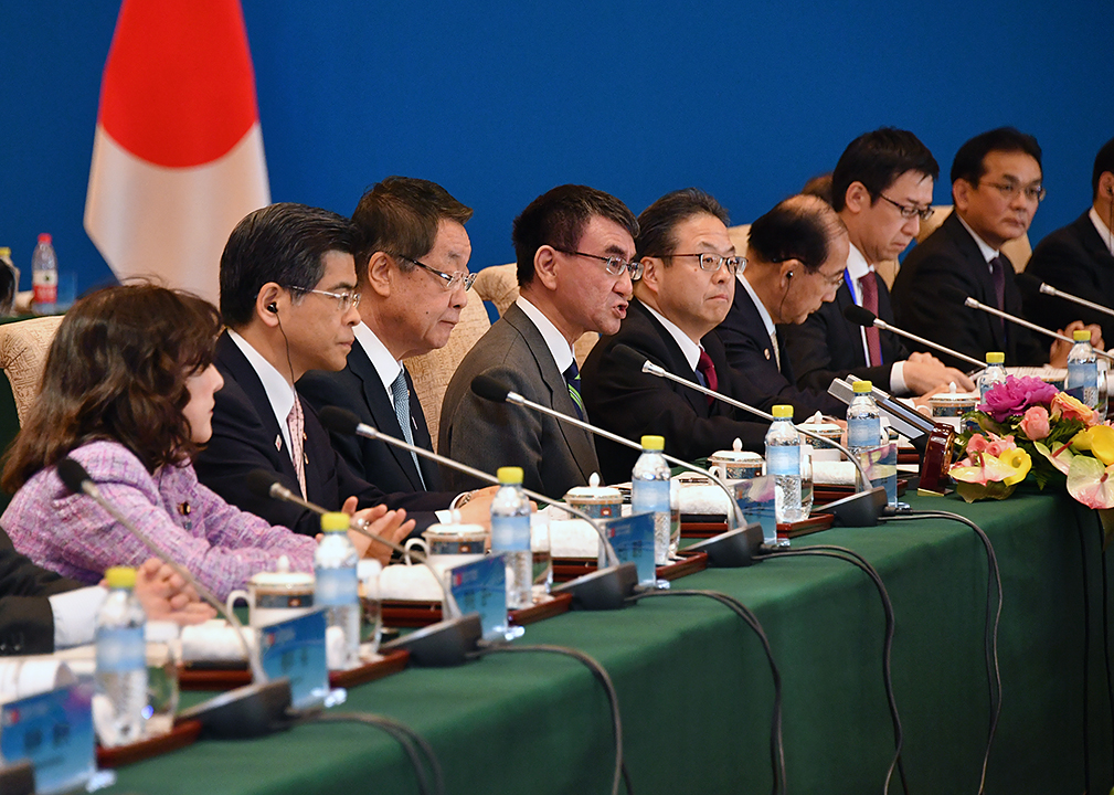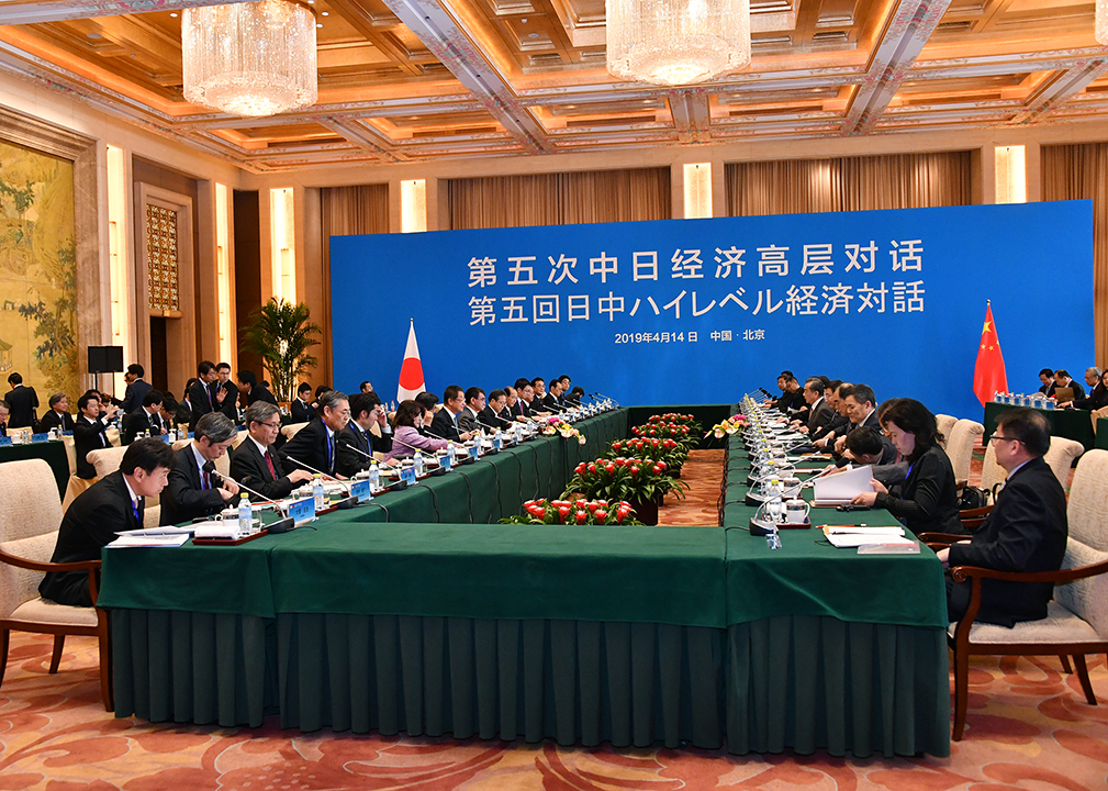 1.2019年4月14日、北京において、第5回日中ハイレベル経済対話が開催されました。日本側は河野太郎外務大臣が、中国側は王毅(おう・き)国務委員兼外交部長が議長を務め、日中間の経済分野における協力と交流などの議題について深い意見交換が行われました。