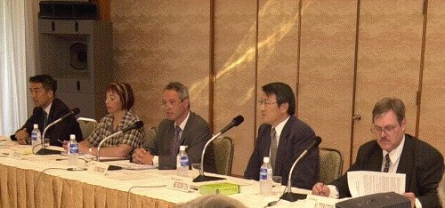 .ジョイント・フォーラム開催記念講演会/座談会 ジョイント・フォーラムの天童市での開催を記念して、ジョイント・フォーラム天童会合の前日(平成13年7月17日)、山形県主催の講演会および県下の高校生との座談会が開催され、ジョイント・フォーラムのメンバーが参加した。 講演会では、Jarl Symreng氏(ジョイント・フォーラム議長/スウェーデン金融監督庁保険局長)が「金融の一元化と国際協力」について、Tanis MacLaren氏(オンタリオ州証券委員会国際担当局長)が「証券市場規制とグローバル市場」について、当庁三國谷監理官が「近年の金融制度改革について」とのタイトルで講演し、県内の金融関係者を中心に約100名が参加した。 一方、高校生との座談会にはジョイント・フォーラムのメンバーであるJohanne Prevost氏(ジョイント・フォーラム事務局)、Carlo Biancheri氏(イタリア国家証券取引委員会)、Christopher Machale氏(スイス銀行委員会)及びMichael Macchiaroli氏(米国証券取引委員会)が参加し、山形県全域から高校生14人と活発な意見交換を行った |