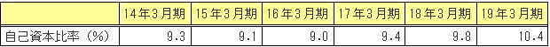 19年3月期の自己資本比率は、引き続き上昇し、10.4%となった。地域銀行の平均自己資本比率が10%台となったのは、初めて。