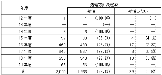 | (注2) | 補償件数は、金融機関が処理方針を決定した被害のうち、被害金額の全額または一部を補償した件数の合計である。 |