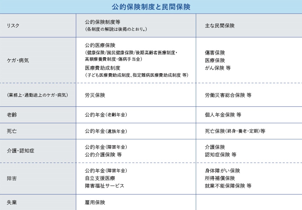 ※主な社会保険制度と民間保険を例示しており、すべての公的保険制度と民間保険を網羅したものではありません。