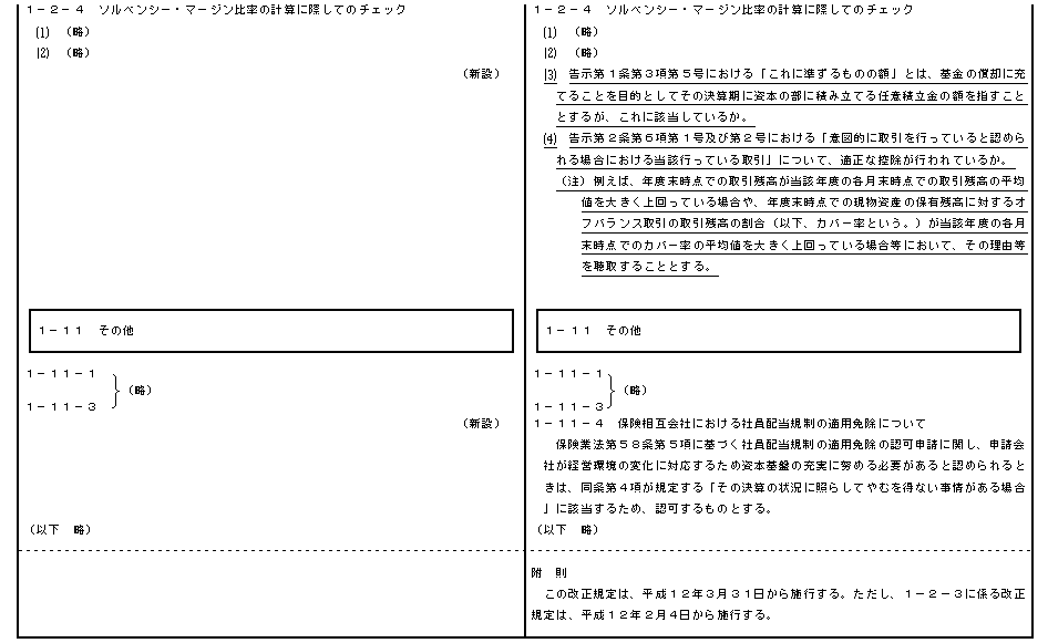 | 1 | .金融監督庁において、事務運営上必要が生じたものについて、本日、事務ガイドライン(「金融監督等にあたっての留意事項について(第二分冊:保険会社関係)」)を別添のとおり改正し、各財務局長に通知した。 |