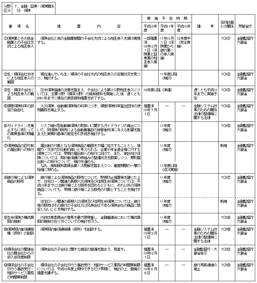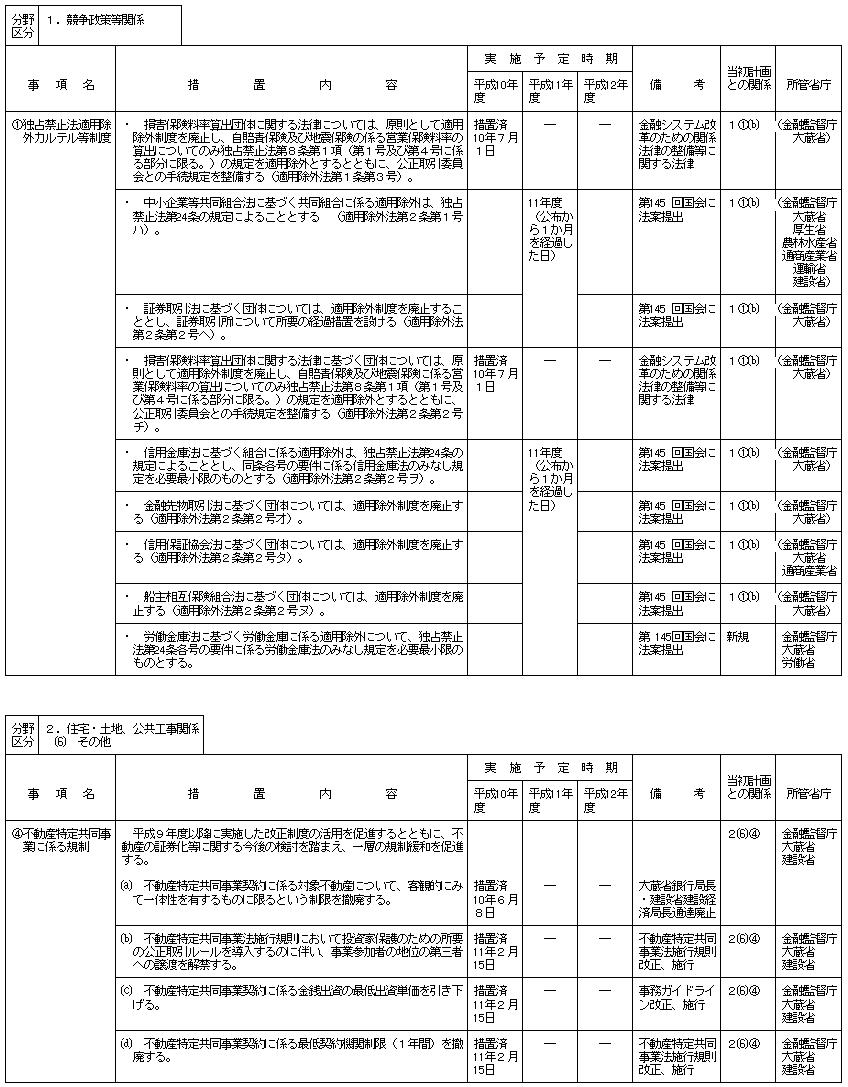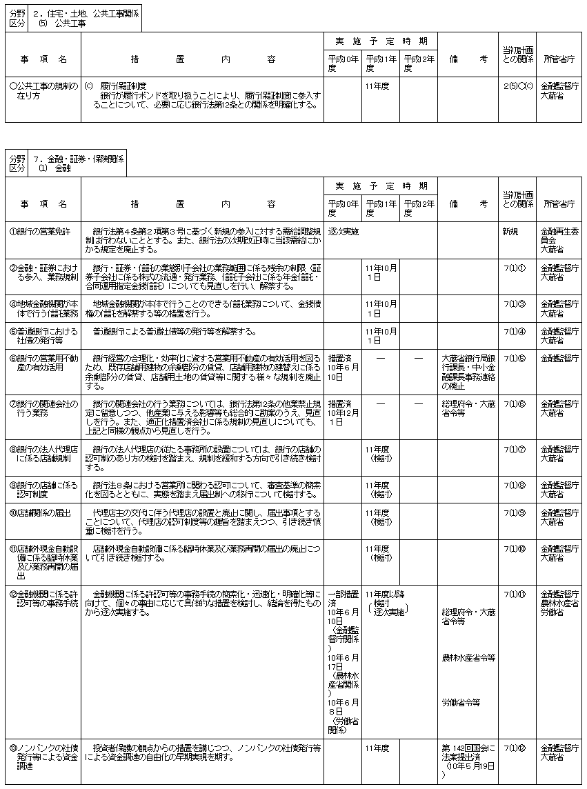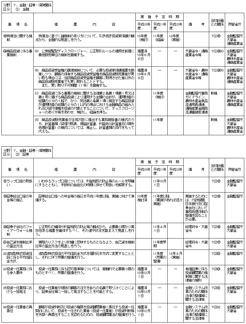 (分野別措置事項:金融監督庁関連)
