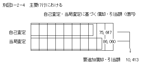 償却・引当の適切性については、自己査定が正確に行われていないほか、償却・引当基準自体に問題が認められたことなどから、全行について償却・引当額の追加が必要であると認められた。