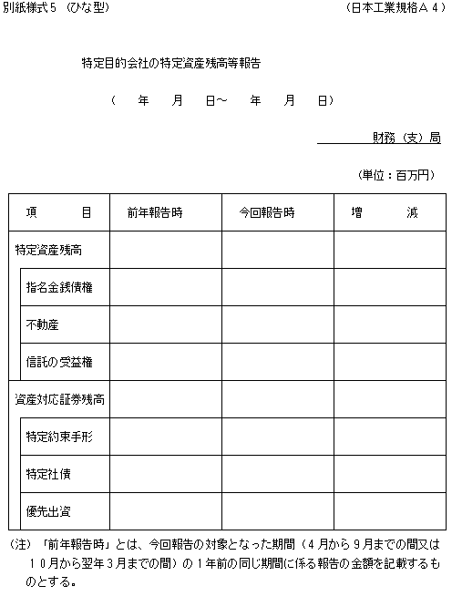 (1) 特定目的会社からの証明申請書及び財務局長が発行する証明書は、別紙様式6によるものと