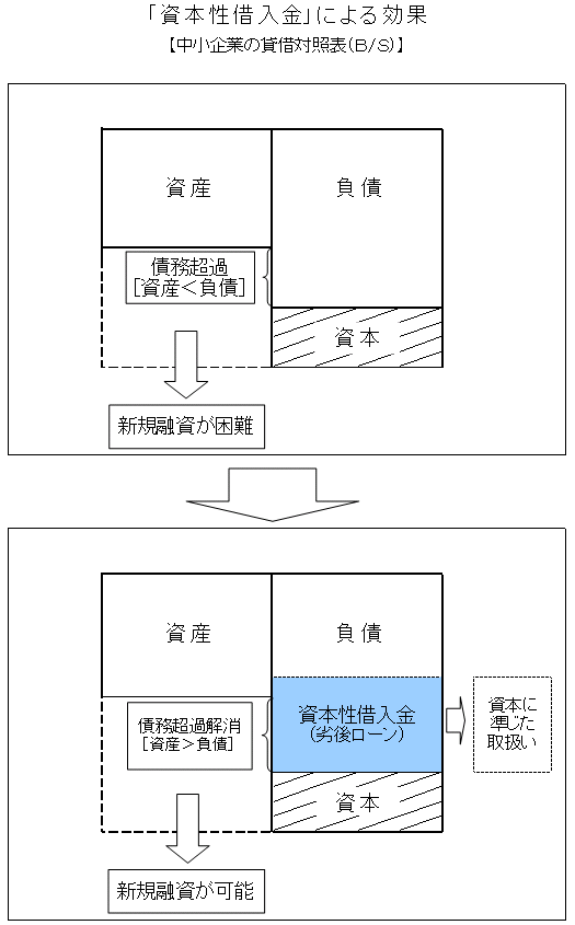 平成23年11月22日、金融庁においては、「資本性借入金」の積極的な活用を促進することにより、東日本大震災の影響や今般の急激な円高の進行等から資本不足に直面している企業のバランスシートの改善を図り、経営改善につながるよう、今般、金融検査マニュアルの運用の明確化を行うこととしました。