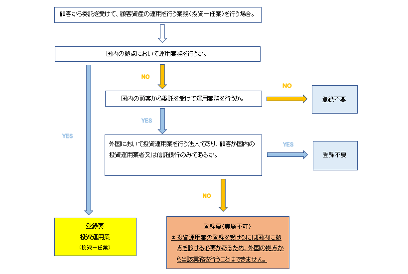 登録要: 投資運用業(ファンド運用業)。ただし、一定の条件満たす場合は登録不要(下記[解説]参照)。
