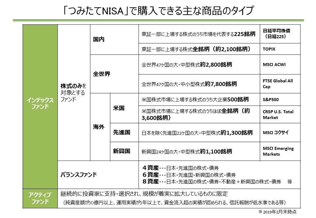 こちらがつみたてNISAで取り扱っている投資商品の種類です。
