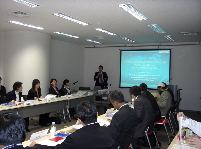 2008年3月3日~6日の日程で、第7回証券法執行セミナーが開催されました。このセミナーは、アジア新興市場国の証券規制当局者を対象として、我が国証券市場に関する法執行についての講義を行うことにより、新興市場国の人材育成、ひいては証券行政・市場の発展に貢献することを目的としています。 今回は11か国から21名の証券法執行担当者が参加しました。