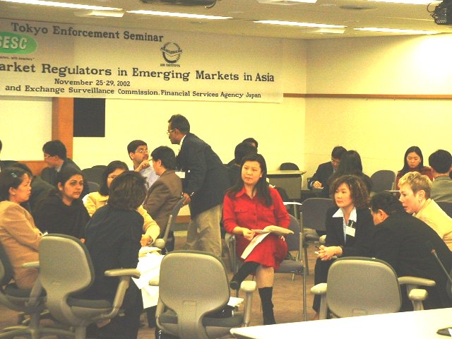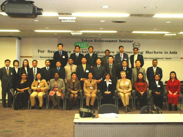 平成14年11月25日(月)から11月29日(金)の日程で、第2回証券法務執行セミナーが開催されました。このセミナーは、アジアをはじめとする新興市場国の証券法務執行担当者を対象として、証券市場の法務執行に関連する制度などについての講義及び証券取引所の見学などを実施することにより、新興市場国の人材育成、ひいては証券行政・市場の発展に貢献することを目的としています。 今回は15カ国から29名の証券法務執行担当者が参加しました。