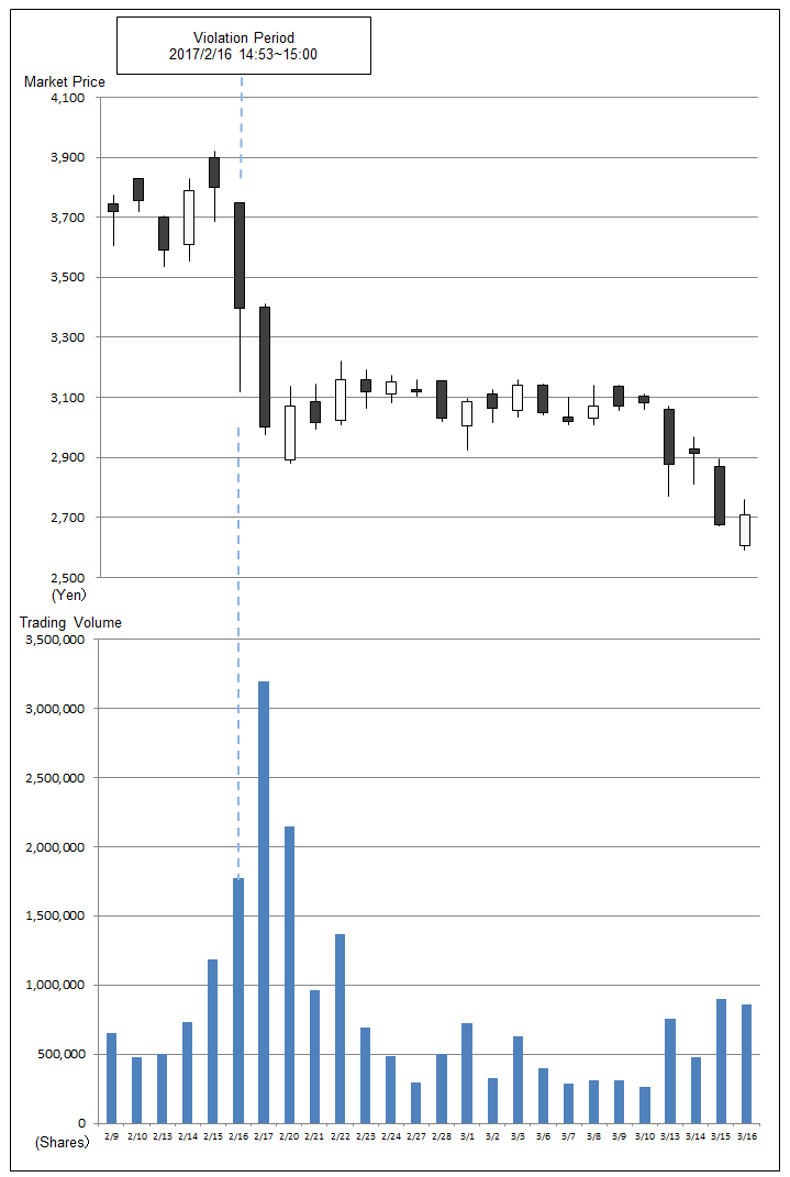 The actions mentioned above conducted by Asset Design were recognized as “a series of Sales and Purchase of Securities, etc.” and “Entrustment, etc.” conducted “in violation of Article 159(2)(i)” as stipulated under Article 174-2(1) of the Financial Instruments and Exchange Act (“FIEA”).