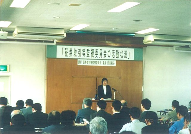 長野県勤労者福祉センターでの講演会の概要 平成15年5月21日(水)、長野県勤労者福祉センターにおいて証券取引等監視委員会及び関東財務局は、証券取引等監視委員会の証券市場での役割や活動についてより多くの投資家の方に理解を深めていただくために、講演会を開催いたしました。 具体的な内容としては、証券取引等監視委員会の野田委員により「証券取引等監視委員会の活動について」というテーマで、監視委員会の体制・組織、最近の主な指摘事例等について講演を行いました。 講演会には、一般の投資家等に参加を呼びかけ、多くの方が参加されました。 Copyright © 2003 Securities and Exchange Surveillance Commission, All rights reserved. サイトマップ 報道・広報ページ一覧を開きます 報道発表の一覧 金融商品取引業等関係 不公正取引関係 開示規制違反関係 年次公表等 証券監視委X(旧Twitter) 証券監視委について 証券監視委の取組みページ一覧を開きます 市場分析審査 証券検査 裁判所への申立て 取引調査 開示検査 犯則調査 金融庁長官等への建議 海外当局との連携 講演・寄稿等 基本指針等 採用情報 市場へのメッセージ ページの先頭に戻る