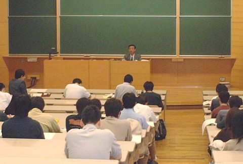 平成16年9月24日(金)、福岡大学において、証券取引等監視委員会(以下、監視委員会といいます)の木村事務局次長が、「証券取引法と証券取引等監視委員会」というテーマで、法学部の学生に対して講義を行いました。 この講義は、監視委員会の役割や活動内容について広く一般の方々に理解を深めていただく活動の一環として、福岡大学・福岡財務支局・監視委員会の共催で、福岡大学法学部の証券取引法のカリキュラムの中で行われました。 講義内容は、監視委員会の組織構成や役割について紹介するとともに、最近の勧告事案や告発事案を例として交えながら、監視委員会の具体的な活動内容や、その根拠となる法令について説明しました。また、「貯蓄から投資へ」といった金融市場の改革の方向性や公正な証券市場の保持のための規制の必要性などについて背景として触れ、今般の証券取引法の改正により導入される課徴金制度の概要などについて説明しました。 会場からは、勧告や告発等につながる検査や調査に役立つ情報の収集状況や海外当局との協力などについて質問があり、具体的な事例を交えた応答がありました。 学生・教授等約80名が、現場の経験等を踏まえての証券取引法の解説や監視委員会の活動状況について熱心に聴講されました。 講義風景  |
