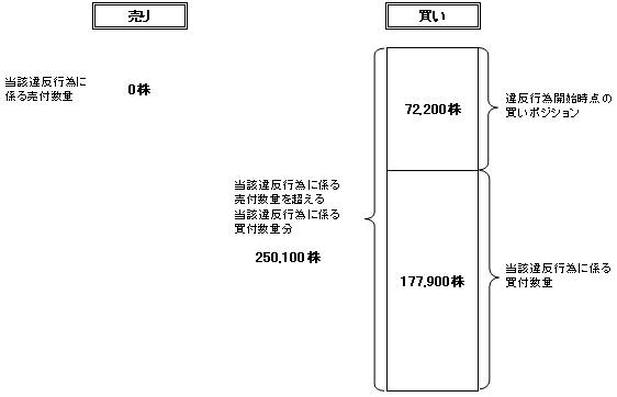 当該違反行為に係る有価証券の買付数量が、売付数量を超えることから、当該超える数量250,100株(250,100株-0株)について、