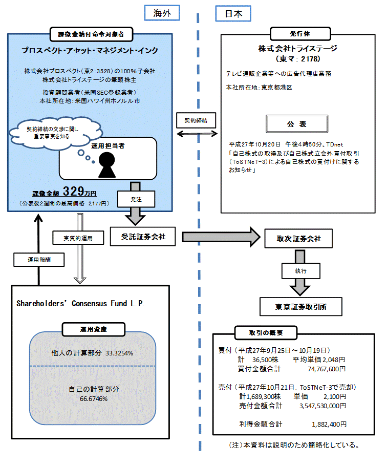 Prospect Asset Management, Inc.によるトライステージ株式に係る内部者取引に対する課徴金納付命令の勧告について