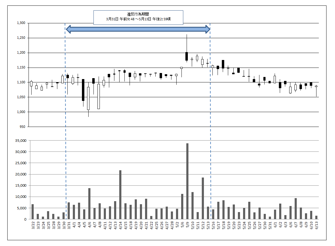 課徴金納付命令対象者が行った上記の行為は、金融商品取引法第174条の2第1項に規定する「第159条第2項第1号の規定に違反する一連の有価証券売買等」に該当すると認められる。 -