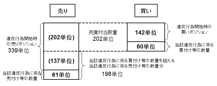 (注2)当該違反行為に係る売買対当数量は、以下により202単位となる。
