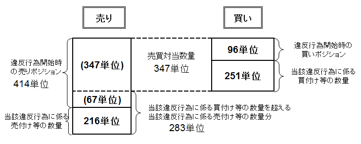 (注6)当該違反行為に係る売買対当数量は、以下により347単位となる。