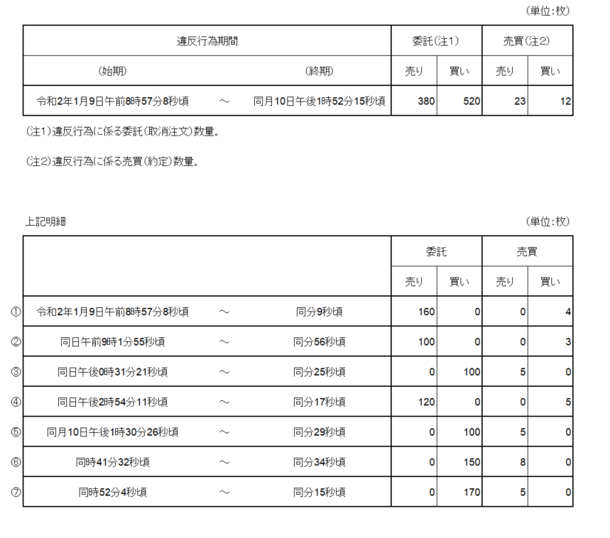本件については、日本取引所自主規制法人から提供された情報も参考として、実態解明を行ったものである。